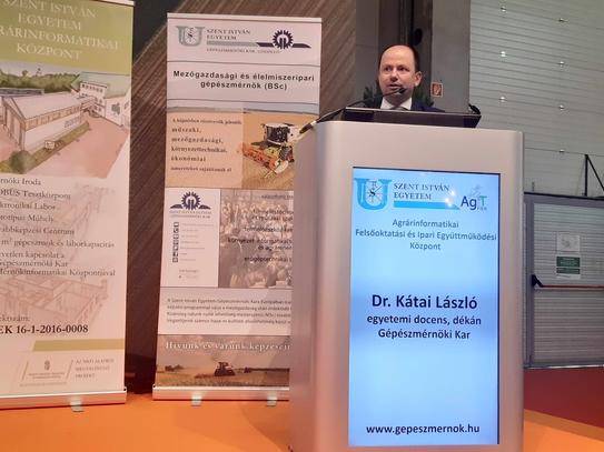 Dr. Szabó István rektorhelyettes „Bemutatkozik az Agrárinformatikai Felsőoktatási és Ipari Együttműködési Központ” című előadásában ismertette az agrárinformatikához kapcsolódó fejlesztéseket és kutatásokat. Dr. Kátai László a Gépészmérnöki Kar dékánja a kar oktatási és innovációs tevékenységét mutatta be, kiemelve az agrárgépészethez kapcsolódó tevékenységeket. Záró előadásként Mezei Tibor és Huszthy Balázs „Innovációs ökoszisztéma a Szent István Egyetemen” című prezentációját láthatta a közönség.