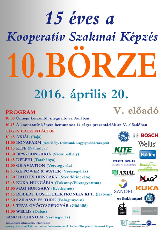 Idén is megrendezésre kerül a Gépészmérnöki Karon az immár 15 éves Kooperatív Szakmai Képzés 10. BÖRZÉJE.